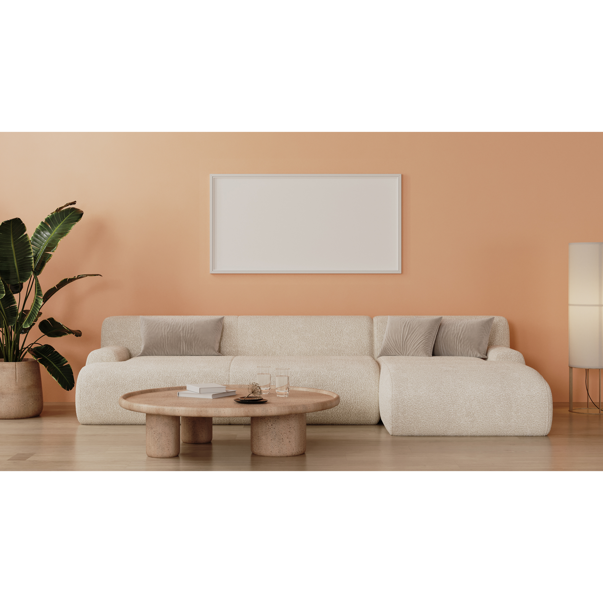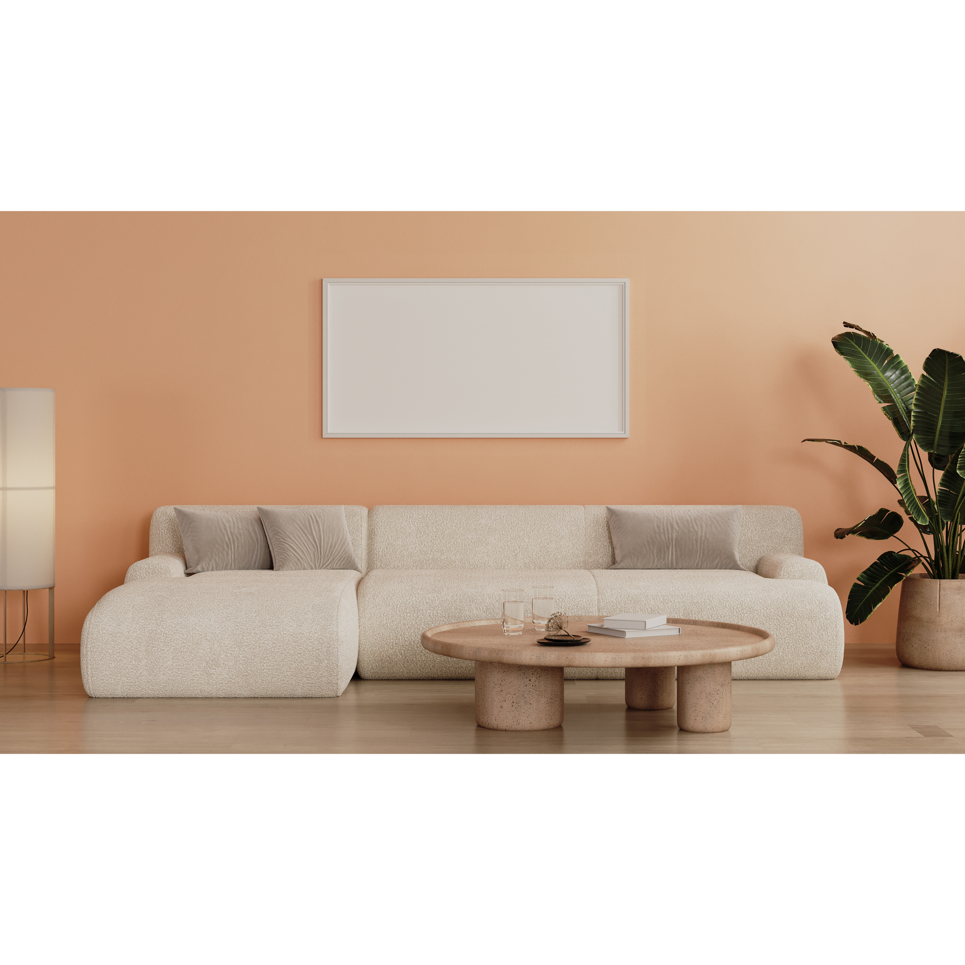 An L-shaped sofa, two comforted seats in addition to a relaxing one with soft fine rounded lines and generous paddings with high-density foam over a solid sturdy solid beechwood make this full seat a relaxing and comfortable living one.